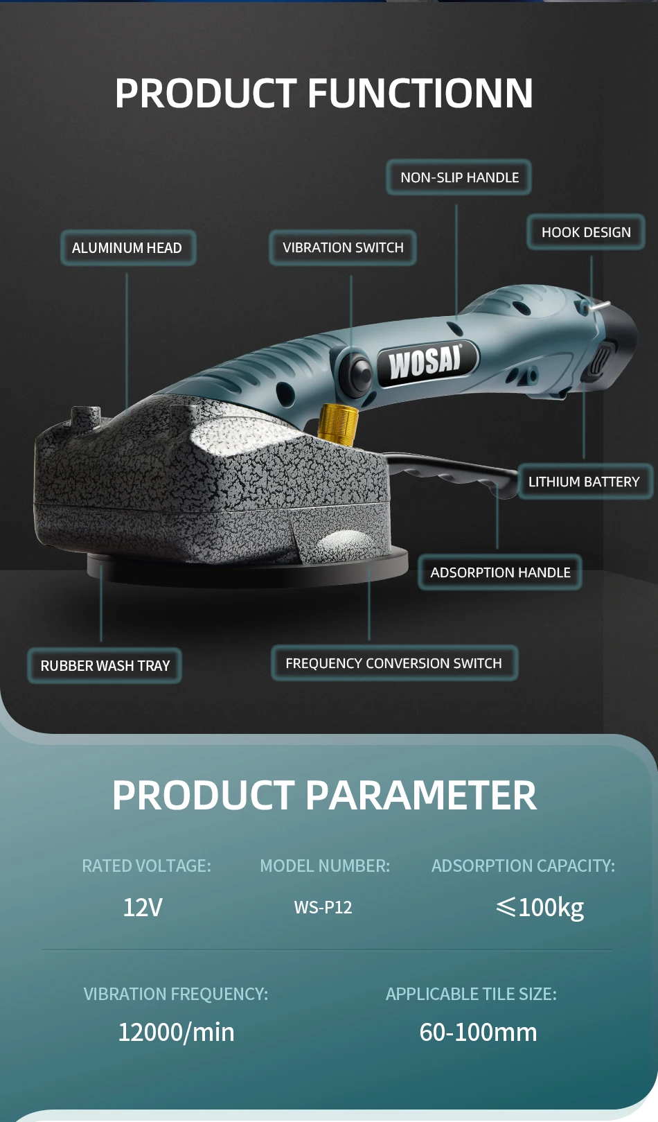 | WOSAI Wireless Tile Installation Portable Smart Tile Tiler Floor Vitero Wall Tile Vibration Machine Brick Wall Tile Tool |