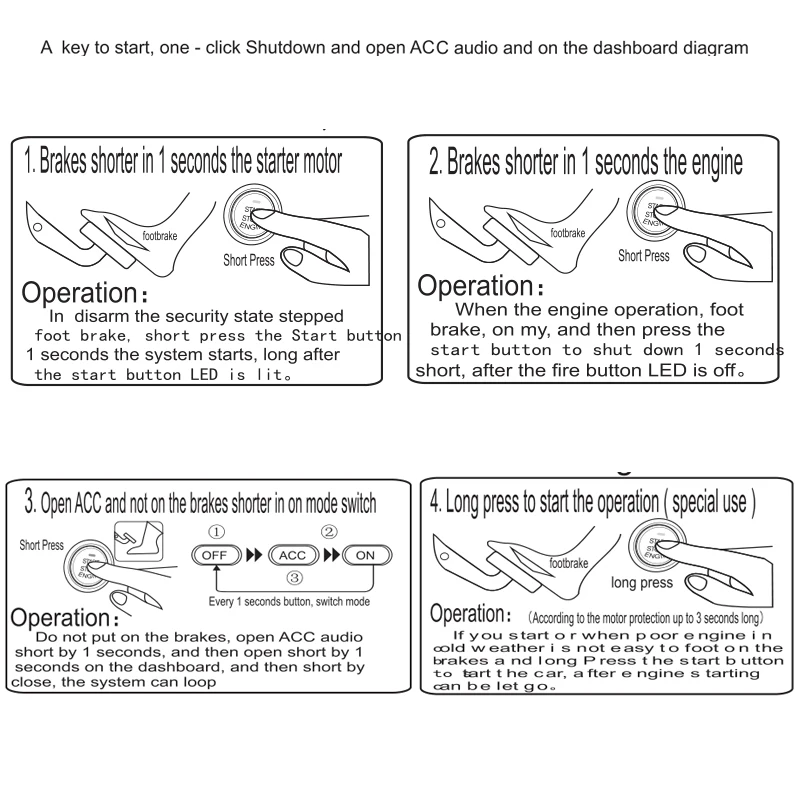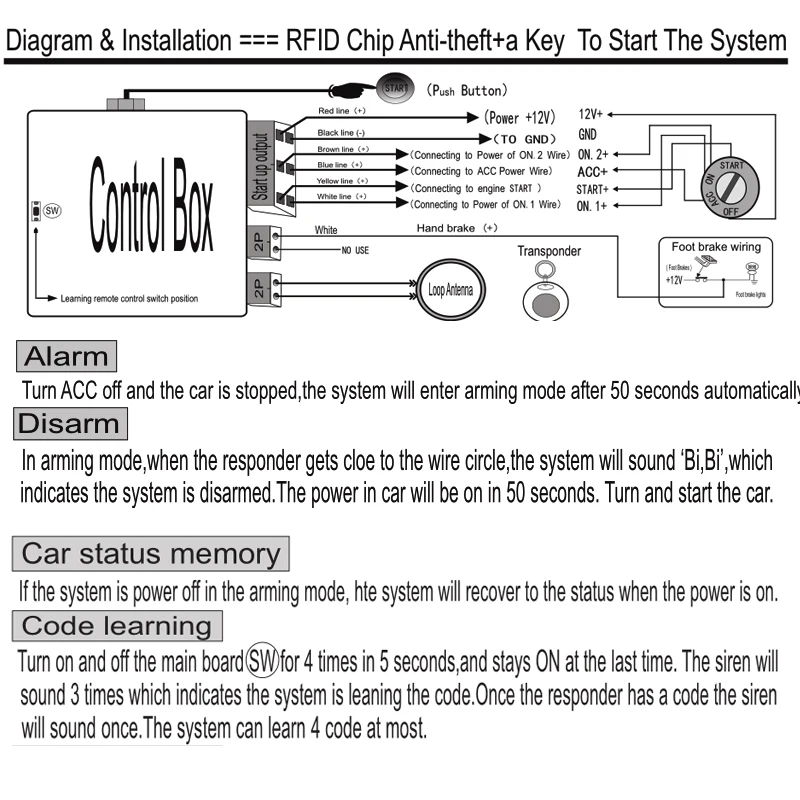 * Immobilizer-- The system will enter arming mode after 15 seconds automatically when car is stopped.
