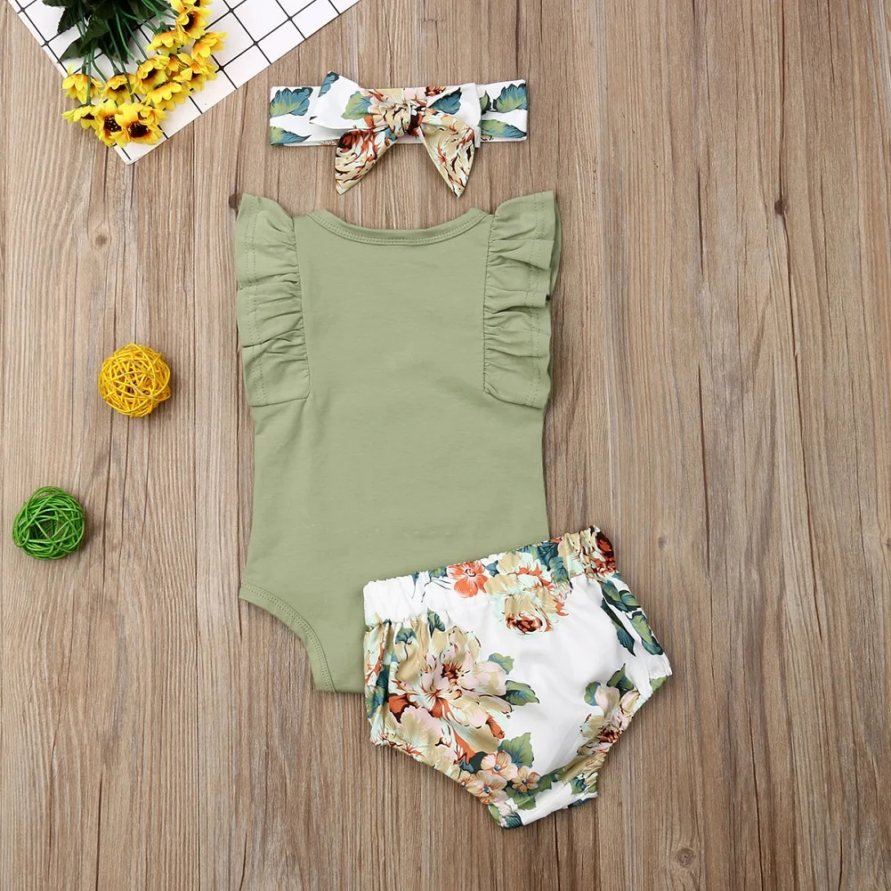 Brand 2020 New Year Gift Toddler Kids Baby Girl Infant Clothes Romper Tops Flower Print Pants Headband Bodysuit Outfits 3Pcs Set