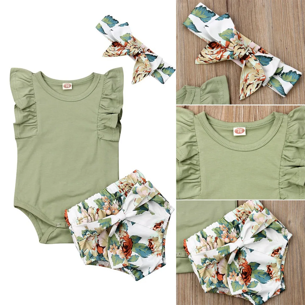 Best Price Comparison With Brand 2020 New Year Gift Toddler Kids Baby Girl Infant Clothes Romper Tops Flower Print Pants Headband Bodysuit Outfits 3Pcs Set