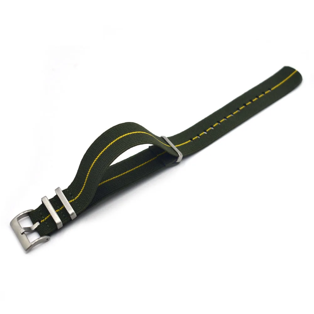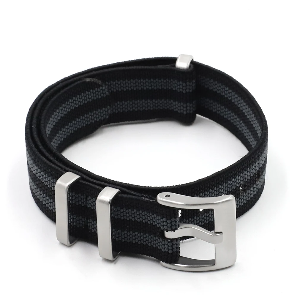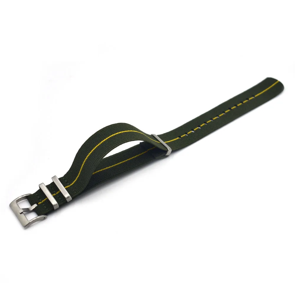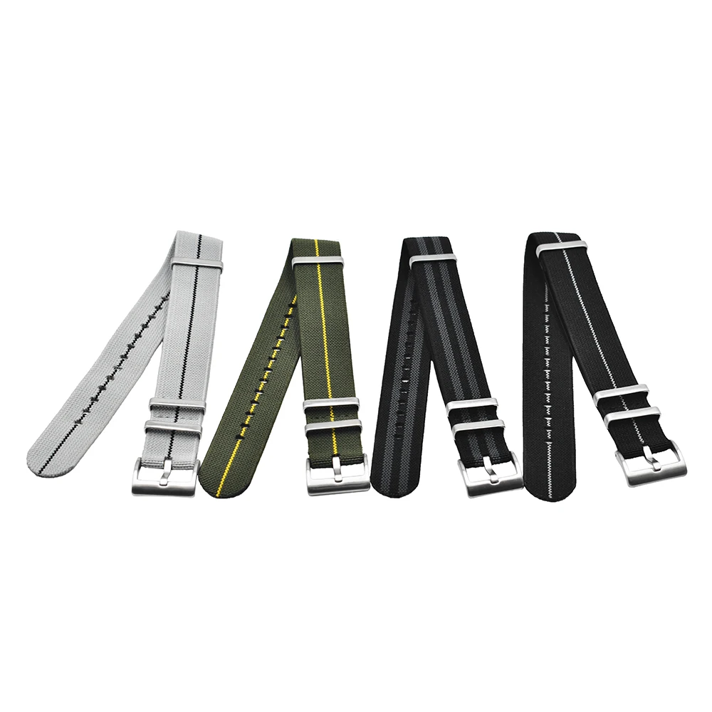 High Quality Men's French Troops Parachute Bag for NATO Nylon Elastic Belt Watchband 18mm 20mm 22mm Watch Strap Silver Buckle