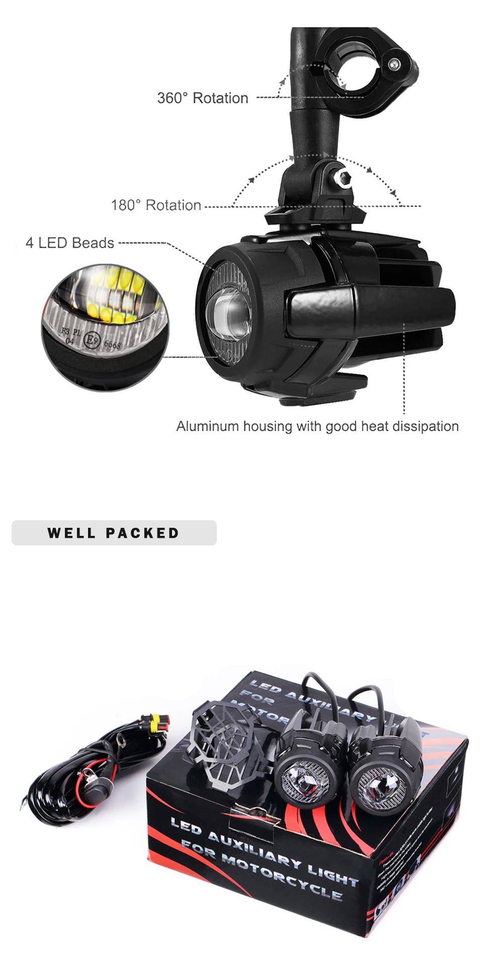 for BMW motorcycle and It also can be used for universal Motorcycle Auxiliary Light.