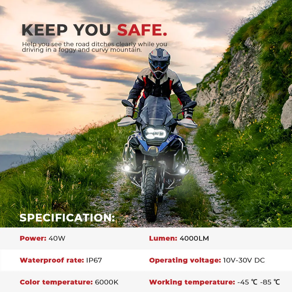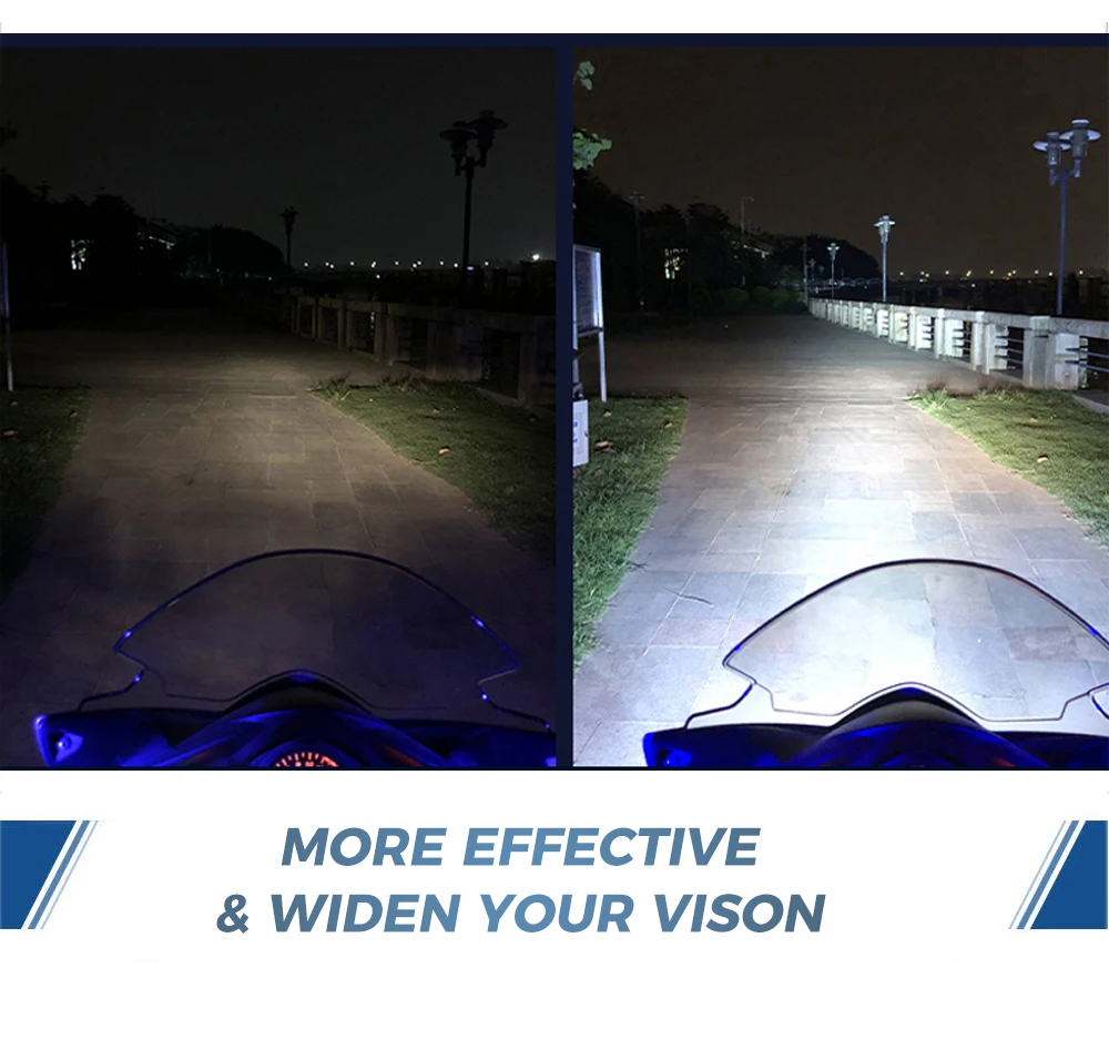 - The output of the LED lights is pure white light, which is more effective at lighting up the road, and is more noticeable to other vehicles during both the day and night.Low Power Consumption :