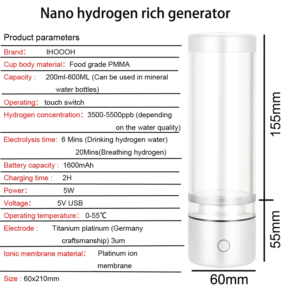 - Multifunction, 1. Outside, you can use ordinary mineral water bottles, 2. Household comes with a cup, 3. Breathing hydrogen