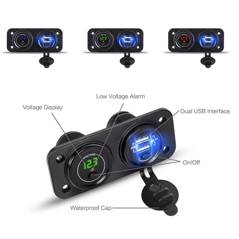 0 Response to "Updated 12V-24V Dual USB Charger + Cigarette Lighter +Voltmeter Car USB Socket with Independent On/Off 2.1+2.1A Car Fast Charger"
